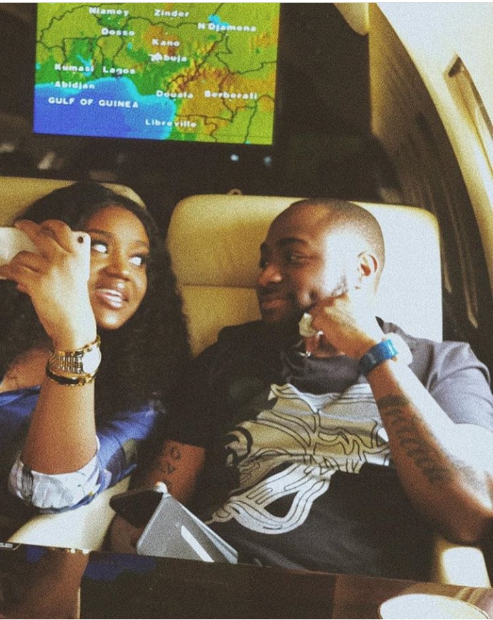 Award-winning singer, Davido’s girlfriend, Chioma shared cute photos of herself and her lover on his private jet enroute an unknown destination, a fan was not happy with the way they posed in the pictures and the fan said she has friend zoned him but in response, thechefchi said he is her everything in 1.