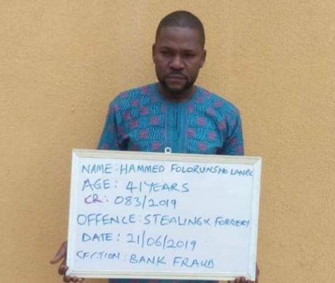 The Economic and Financial Crimes Commission, EFCC, Ilorin Zonal Office on July 26, 2019 secured the conviction of Hammed Lanre, a Civil Engineer, who was arraigned before Justice Mahmood Abdulgafar of a Kwara State High sitting in Ilorin, for offence bordering on stealing.
