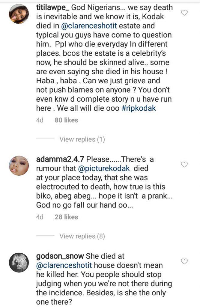 It was reported that Clarence Peters has been called in for questioning and the death of Kodak is being investigated as a murder .Clarence’s longtime girlfriend responded to defend him,also a crew member who was present when Kodak died defended Clarence