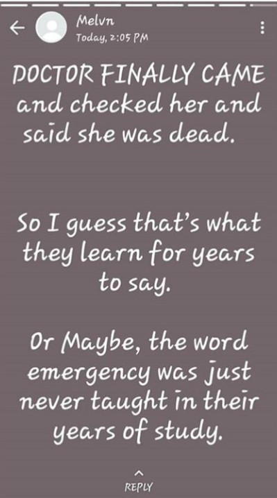 “We moved to another hospital, finally, doctor came and checked her and said she was dead….”