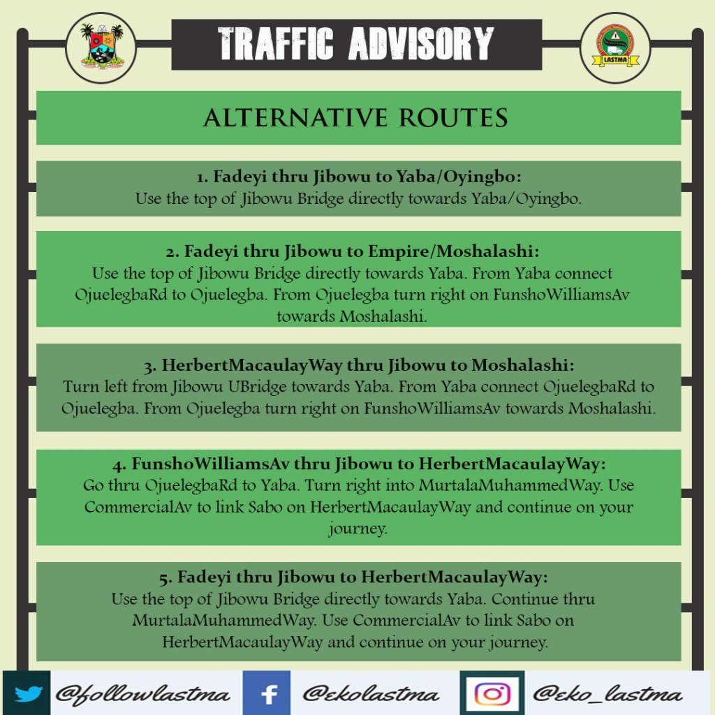 Closure of Jibowu Rail Crossing for Gas Pipe Relocation Works from Wednesday, 31st July, 2019 as announced by Lagos State Government.