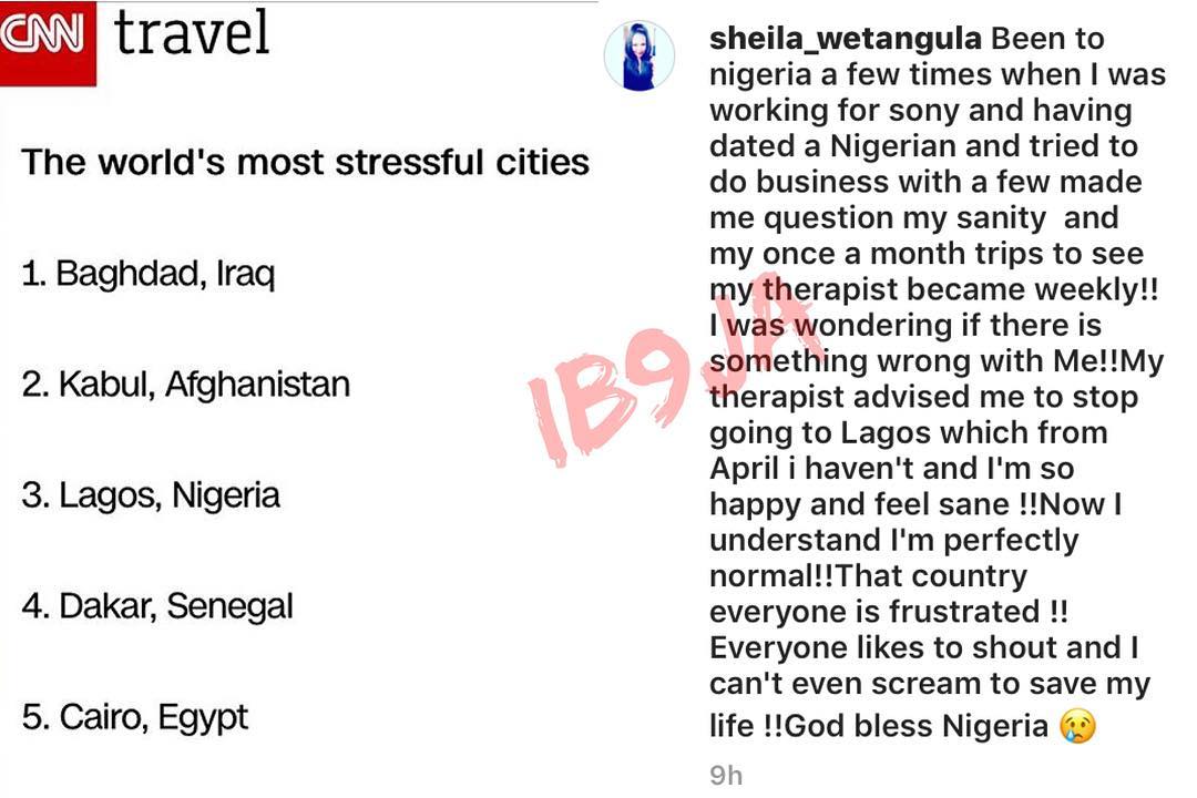 CNN’s World’s Most Stressful Cities: Every Nigerian Is Frustrated – Kenyan Socialite, Sheila Wetangula