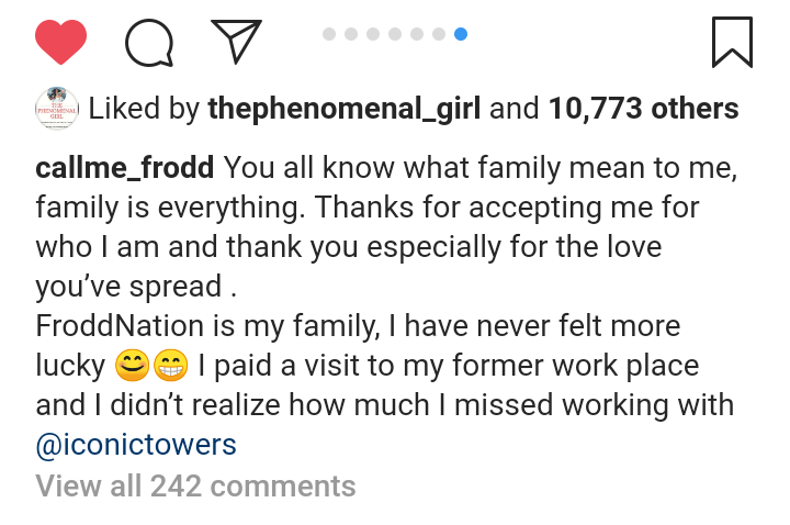 FroddNation is my family, I have never felt more lucky I paid a visit to my former work place and I didn’t realize how much I missed working with @iconictowers