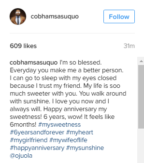 Cobhams Asuquo pours encomium on wife for their 6th Wedding Anniversary