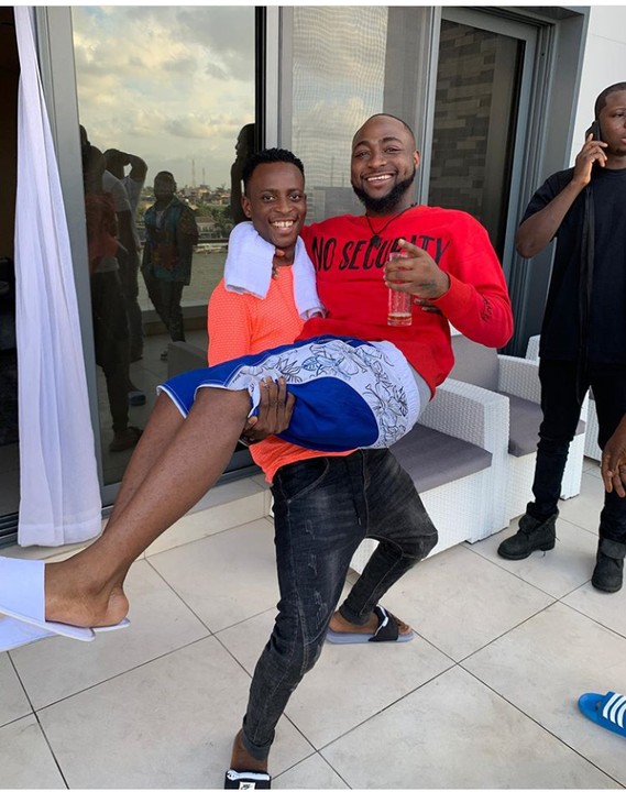 Popular instagram comedian, Sydneytalker carries Davido up like a child in new pictures.