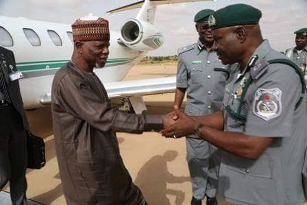 Comptroller-General of Customs Col Hameed Ali (Rtd) is presently on a visit to officers at the Sokoto/Kebbi/Zamafara Area Command. He is pictured above arriving in the agency’s private jet at the Sultan Sadiq Abubakar III Airport Sokoto. More photos after the cut.