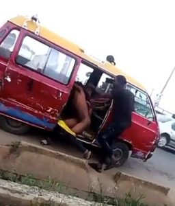 A Conductor strip himself unclad to fight a passenger over N50, along sapele road, Benin, Edo State.