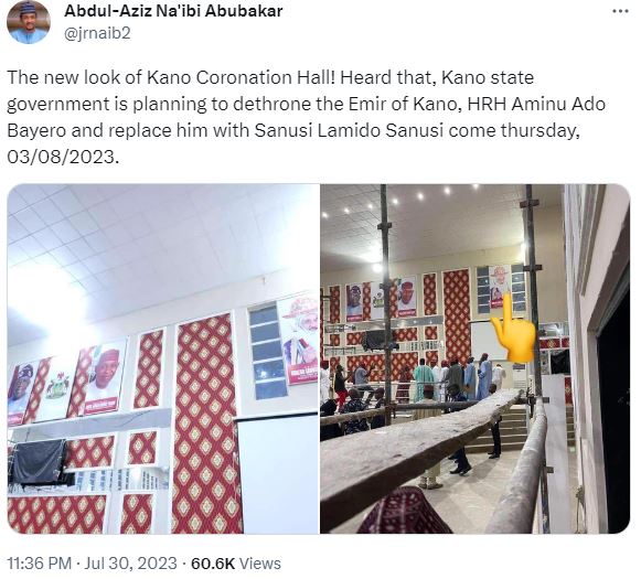 Over the weekend, photos of the dethroned Emir hung in the state government house resurfaced online.
