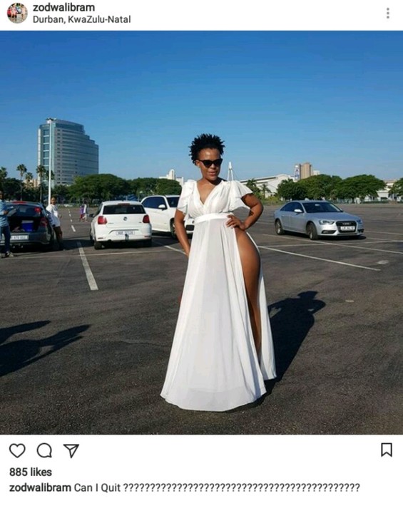 The controversial South African unclad dancer “Zodwa Wabantu” took to her instagram page to posts a new photos of herself wearing nothing but a long white high slit dress with no pant.