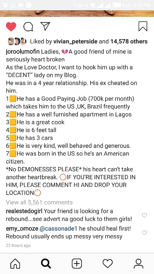 Relationship adviser, Joro Olumofin caused a storm on his social media page when he announced his plan to seek a partner from his friend who is doing well financially. According to him, his friend recently parted ways with his girlfriend for cheating on him. The man in question earns almost a million naira per month and travels abroad frequently. Here are some interesting highlights about the man which are driving ladies gaga: