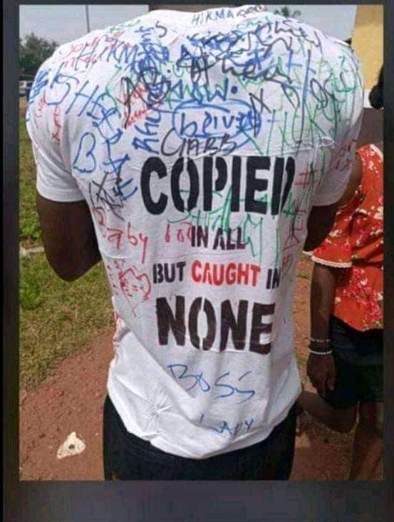 The usual practice of Nigerian Students is to have a signing out occasion after their final exams where fellow students would Celebrate with them by appending their signatures on their shirts.