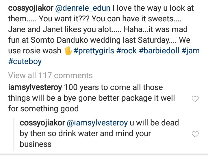 A follower criticized Cossy Ojiakor after she shared a photo of Denrele Edun checking out her boobs and Cossy had some words for the follower.