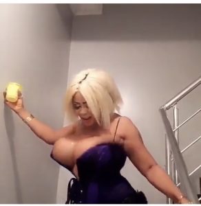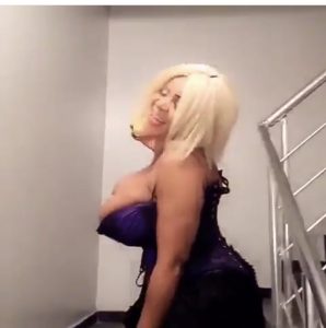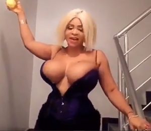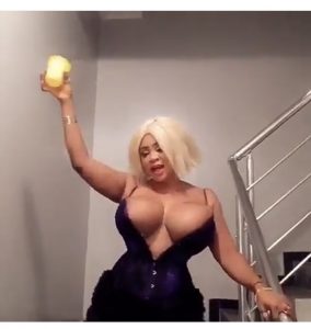The Nollywood actress who is well known for showing off her assets on social media, took to her Instagram account to flaunt her jaw-dropping boobs in a very risky dress.