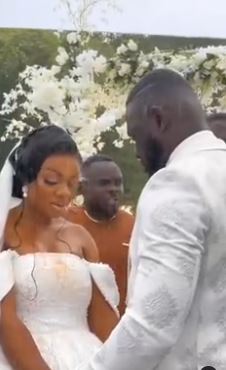 The couple had opted for an outdoor wedding but were taken aback when a heavy downpour started while the wedding proceeding was ongoing.