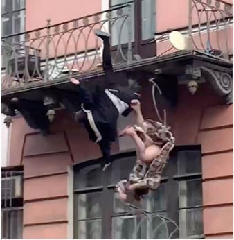 Footage shows Olga Volkova and Yevgeny Karlagin, both 35, struggling on the balcony of their second-floor home in St Petersburg, Russia, on Saturday morning, May 29.