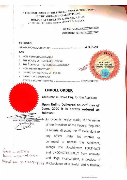 A Federal Capital Territory High Court in Abuja has granted an unconditional release to spokesperson for the Coalition of United Political Party, Ikenga Ugochinyere being held by the police.