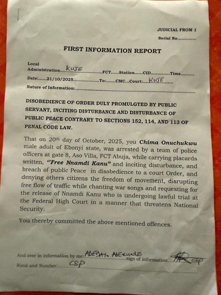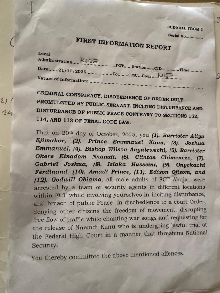 They were arrested on Monday, October 20, for being part of the Free Nnamdi Kanu protest. Ejimakor gave this update on his X handle this morning, October 21.