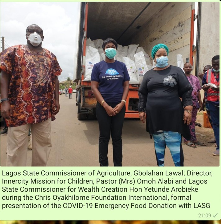 The InnerCity Mission for Children, a non-governmental organization under the auspices of the Chris Oyakhilome Foundation International, has donated food items to the Lagos state government to help soften the effects of the compulsory lockdown in the state which has affected many who survive through their daily means of sustenance.