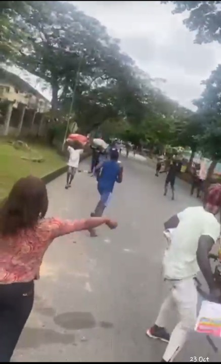 The palliative warehouse in calabar was discovered by Zenith bank beside State Housing Estate around 5pm. As at now, the police is trying to disperse the looters and save what is left of the palliative.