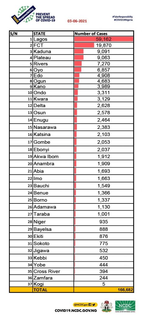 122 new cases of #COVID19Nigeria;Lagos-105Imo-4Kaduna-4Akwa Ibom-3FCT-2Delta-1Rivers-1Oyo-1Ekiti-1