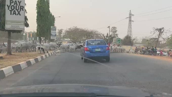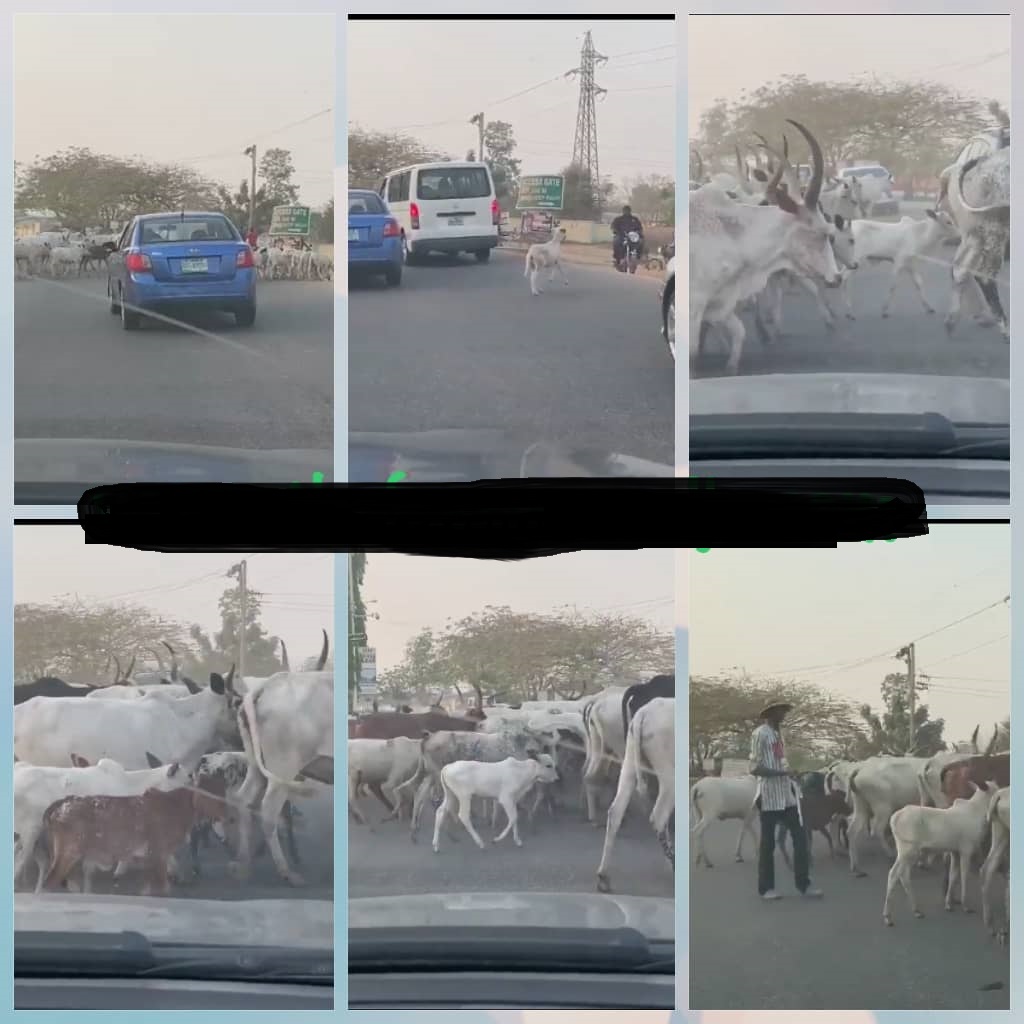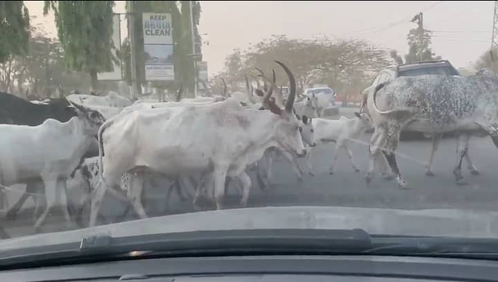 The cows were crossing the main road at the Nnamdi Azikiwe International Airport, thereby disrupting people with cars. They caused traffic at the airport.