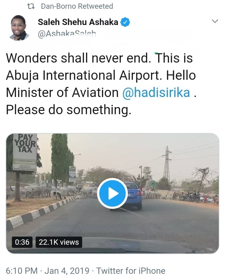 VOA Journalist, Saleh Shehu Ashaka shared this video of cows storming Abuja international Airport.