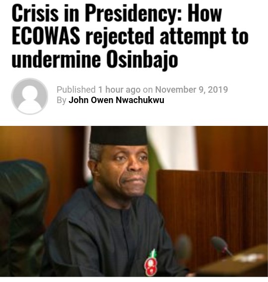The power tussle at the Presidency continued on Friday as ECOWAS rejected an alleged move by a top presidential aide to upturn President Muhammadu Buhari’s decision to send Vice President, Prof. Yemi Osinbajo to Niamey, Benin Republic.