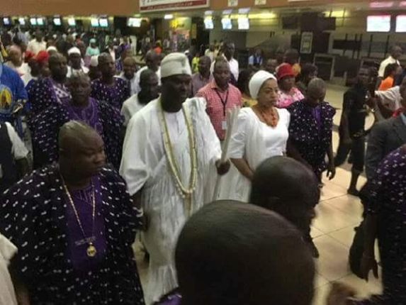 Crowd gather at the airport as Ooni of Ife and his wife leave for the US