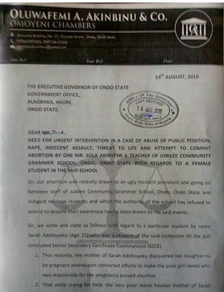 This to me is not fair at all. How can a teacher do that to a student and he is trying to intimidate them as well. As we speak, the Ondo State government are trying to investigate this matter. The ministry of education have sent delegates to the school. I pray we get justice for her.”