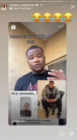 Reacting to the viral video, Cubana Chief Priest took to his Instastory to reshare the it with a laughing emoji..