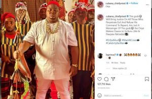 This is over his alleged relationship with married woman, Tega In reaction, Cubana Chief Priest took to his Instagram page to warn of the impending terror that faces perpetrators of evil who fail to repent their sins.