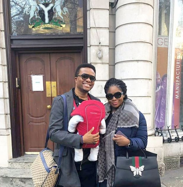 The new parents were pictured in front of the Nigerian High Commission in London with their bundle of joy. Lovely!