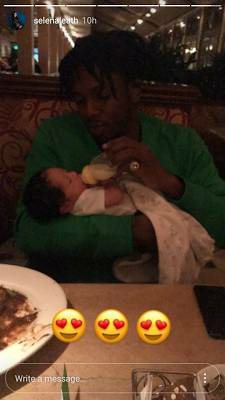 “Mad Over You” Crooner Singer, Runtown who recently welcomed his son was pictured bottle feeding him.