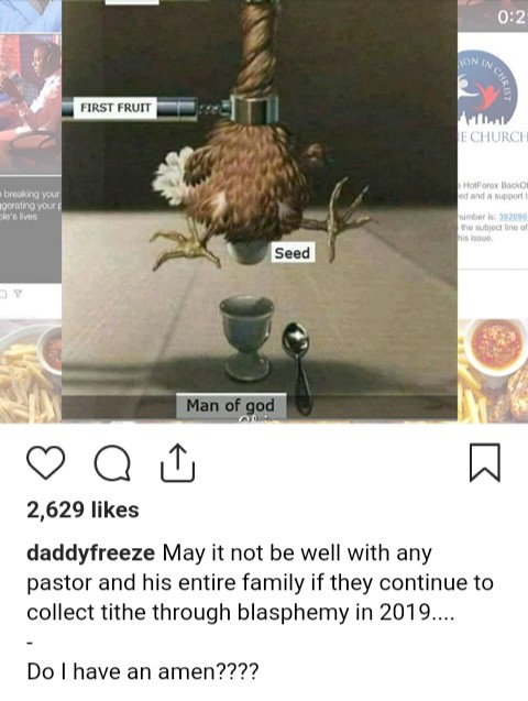 Controversial pastor Daddy Freeze has showered Curses on Pastors who will collect tithe in 2019.