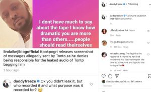 Free The Sheeple leader, Daddy Freeze has reacted after Prince Kpokpogri denied leaking an audio of Nollywood actress, Tonto Dikeh begging him not to break up with her.