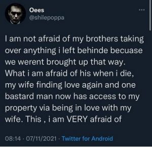 As people shared their opinion on the matter, a Twitter user responded, saying that what he fears is his wife getting his wealth only for her to fall in love and marry another man who will then enjoy what he had worked for.