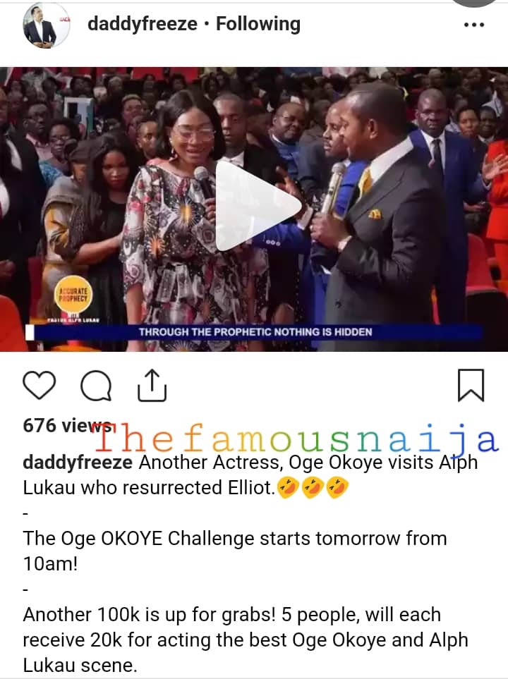Now, Daddy Freeze has started the Oge Okoye and Alph Lukau challenge.