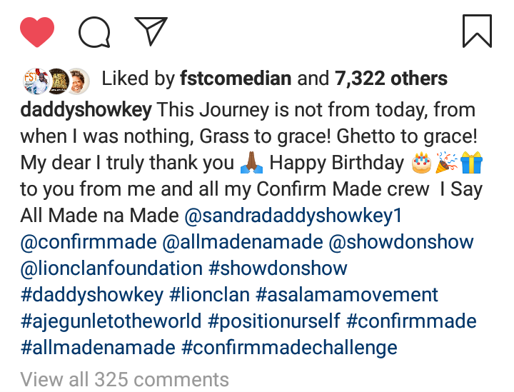 Daddy Showkey reveals the journey did not start from today, his wife was there when he was nothing but today he has graced.