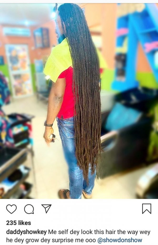 Veteran musician, Daddy Showkey has shocked his fans after revealing the true length of his hair.