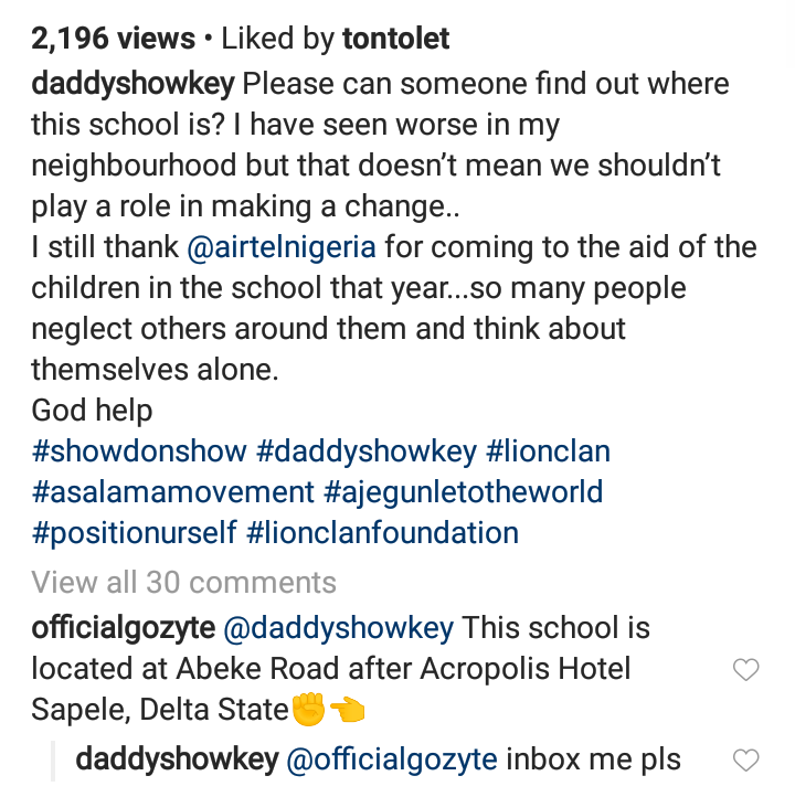 Music icon Daddy showkey express his grief over a degrading state of school with a leaking roof and a bad floor. Even was evwn falling directly into the classroom and water was seen on the floor where pupils were sitting learning. He ask for the location of the school and a fan answered him at the the comment section. The school is located in Delta state.