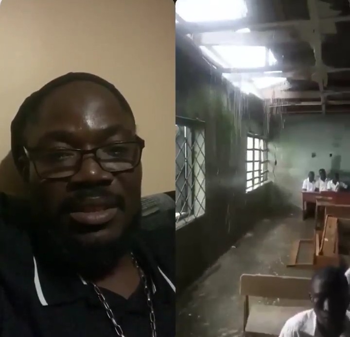Daddy Showkey Reacts To Photos Of A School With A Leaking Roof In Delta