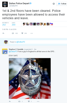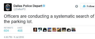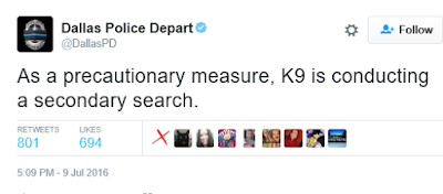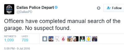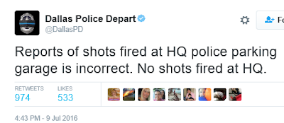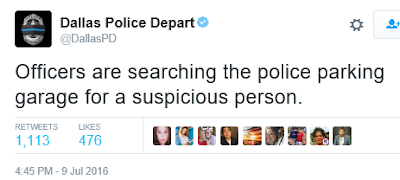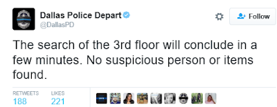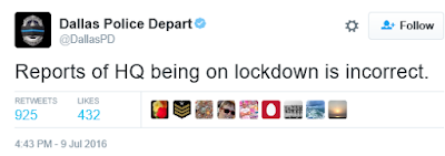 There were news reports that Dallas Police Headquarters was on lock down due to a masked person seen entering the building. However, Dallas Police Dept through their twitter account has debuinked that claim. They said they searched the parking garage looking for a suspicious person based on a tip they received but that the building was not on lockdown. Guess they are on high alert after 5 members of their police force were killed and 7 others were injured by a lone sniper that is now dead.