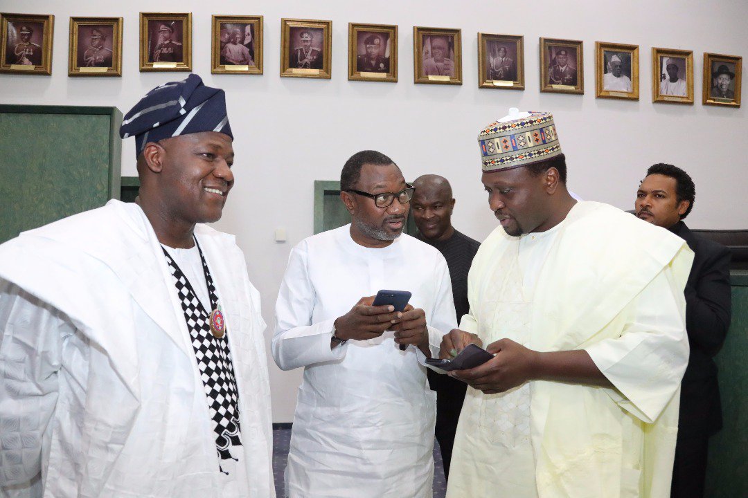 Aliko Dangote, Hon Yakubu Dogara, Femi Otedola and Stanley Jegede at the wedding reception of Saraki’s and Ojora’s last night in Abuja.