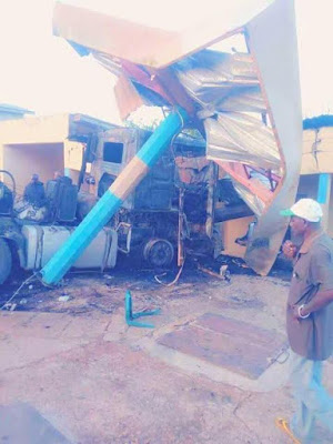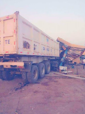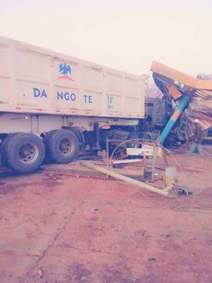 Dangote trucks rams into a petrol station in Ekiti state (photos)
