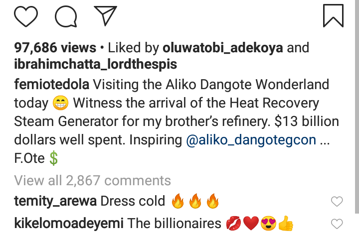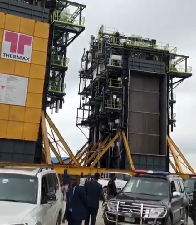Nigerian popular billonaire Femi Otedola joins his billonaire business friend Dangote at his new refinery to inspect his newly imported heat recovery generator worth of 13billion dollars. Wow!!!