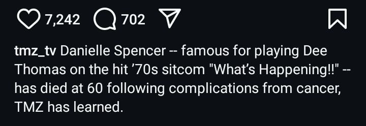 Renowned Hollywood actress, Danielle Spencer, known for her role as Dee Thomas in the 1970s sitcom, ‘What’s Happening’ has reportedly passed away.