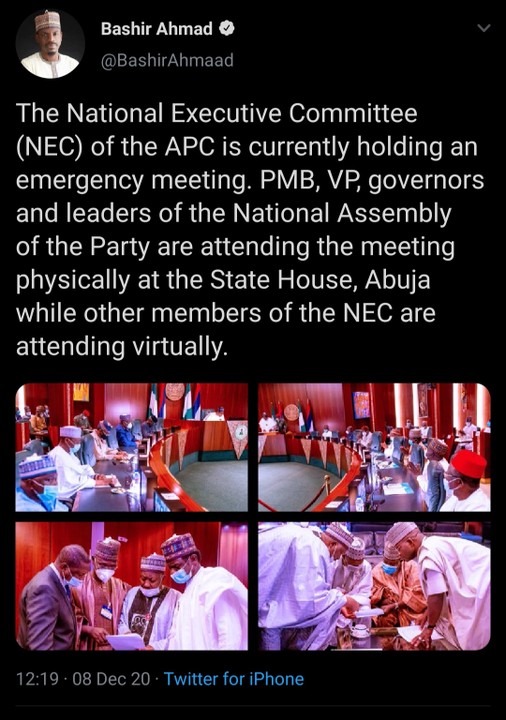 The National Executive Committee (NEC) of the APC is currently holding an emergency meeting.