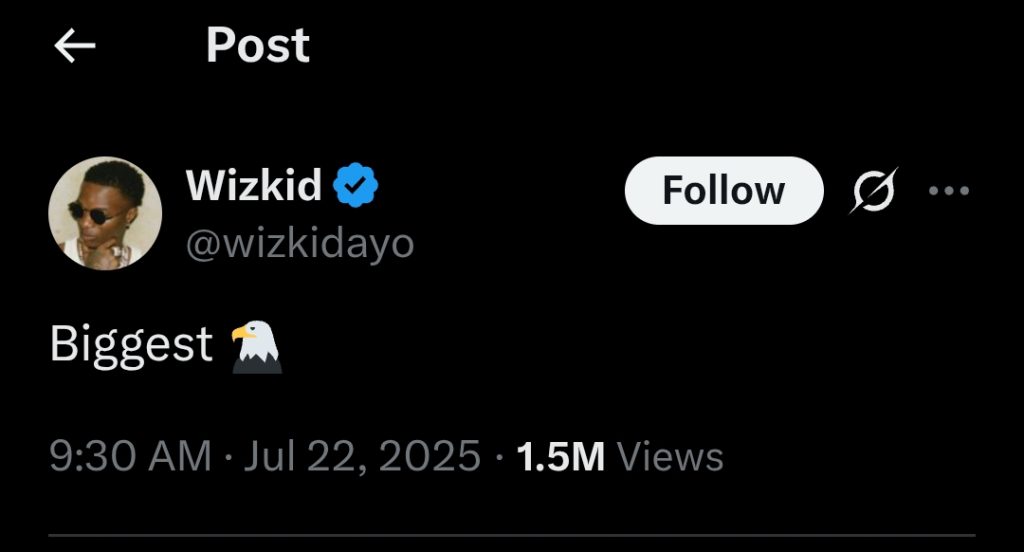 The drama began on the morning of Tuesday, July 22, when Wizkid took to his page and wrote, “Biggest 🦅”, seemingly declaring himself the greatest in the Nigerian music industry.