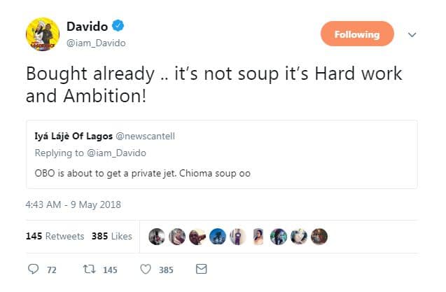 Congratulations to the Davido as he’s acquired a private jet based on report…