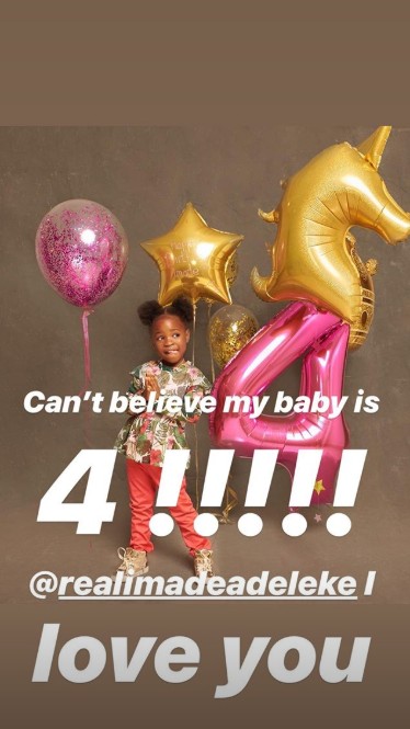 Davido’s first daughter, Imade Aurora Adeleke is 4 years old today, and the proud dad has taken to Instagram to celebrate her.